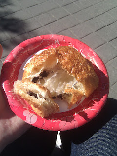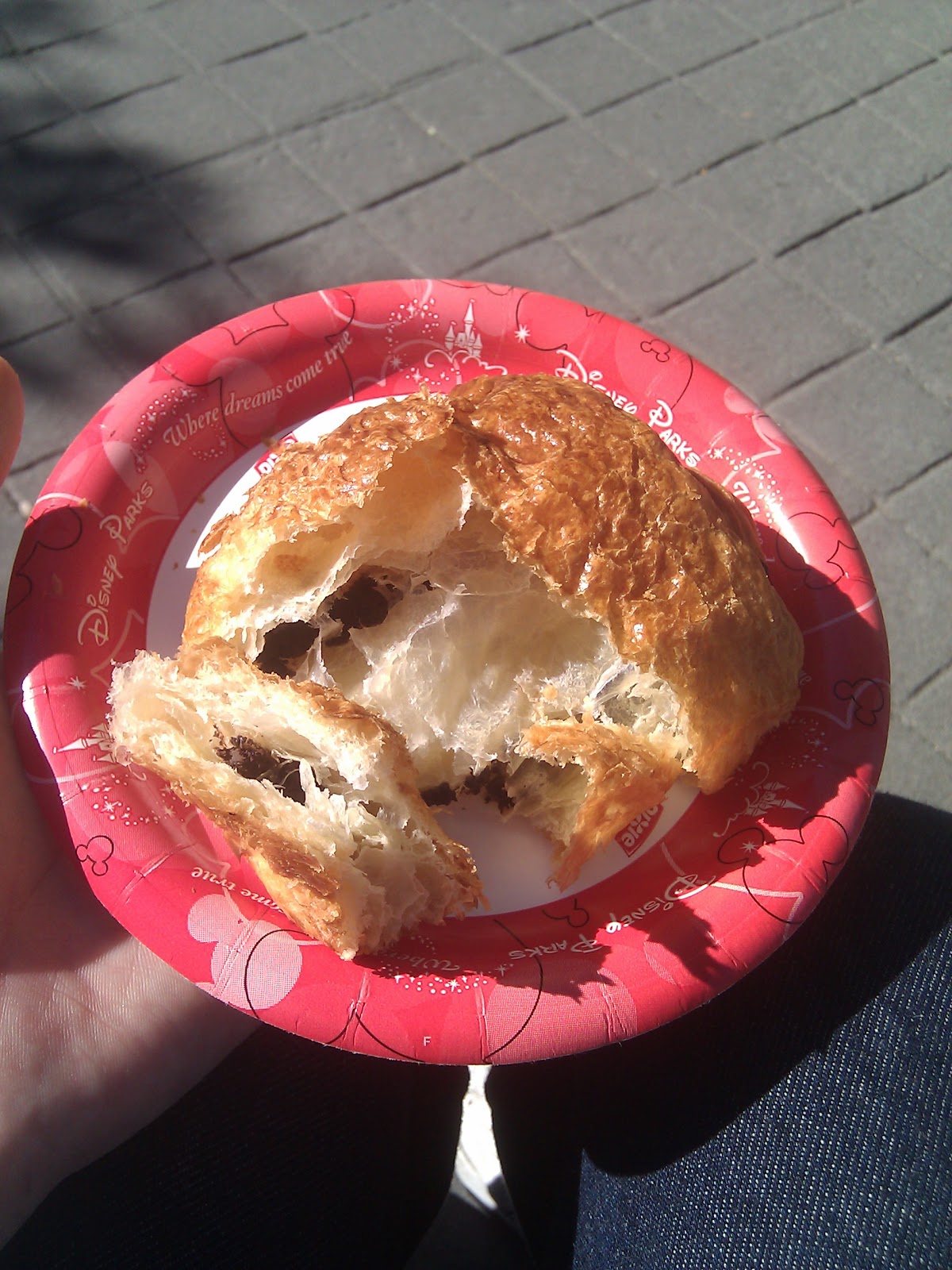 After breakfast, we headed to Epcot and started to walk around the Mexican, French, German place etc. B really wanted us to eat at the Mexican place for dinner since the atmosphere is so romantic but we couldn't get reservations. Poor B was on his Android every few minutes trying to book us. We had plenty of good food though. For a mid-morning snack I had a chocolate eclair from the french pastry place and B had a chocolate croissant. I was worried that the cream in the middle of the eclair would be too rich, but the texture was perfect. It tasted like a light, whipped, chocolate ice cream. I also loved that the middle was cold while the outside dough was hot and chocolaty. Best pastry I've ever had in my entire life.